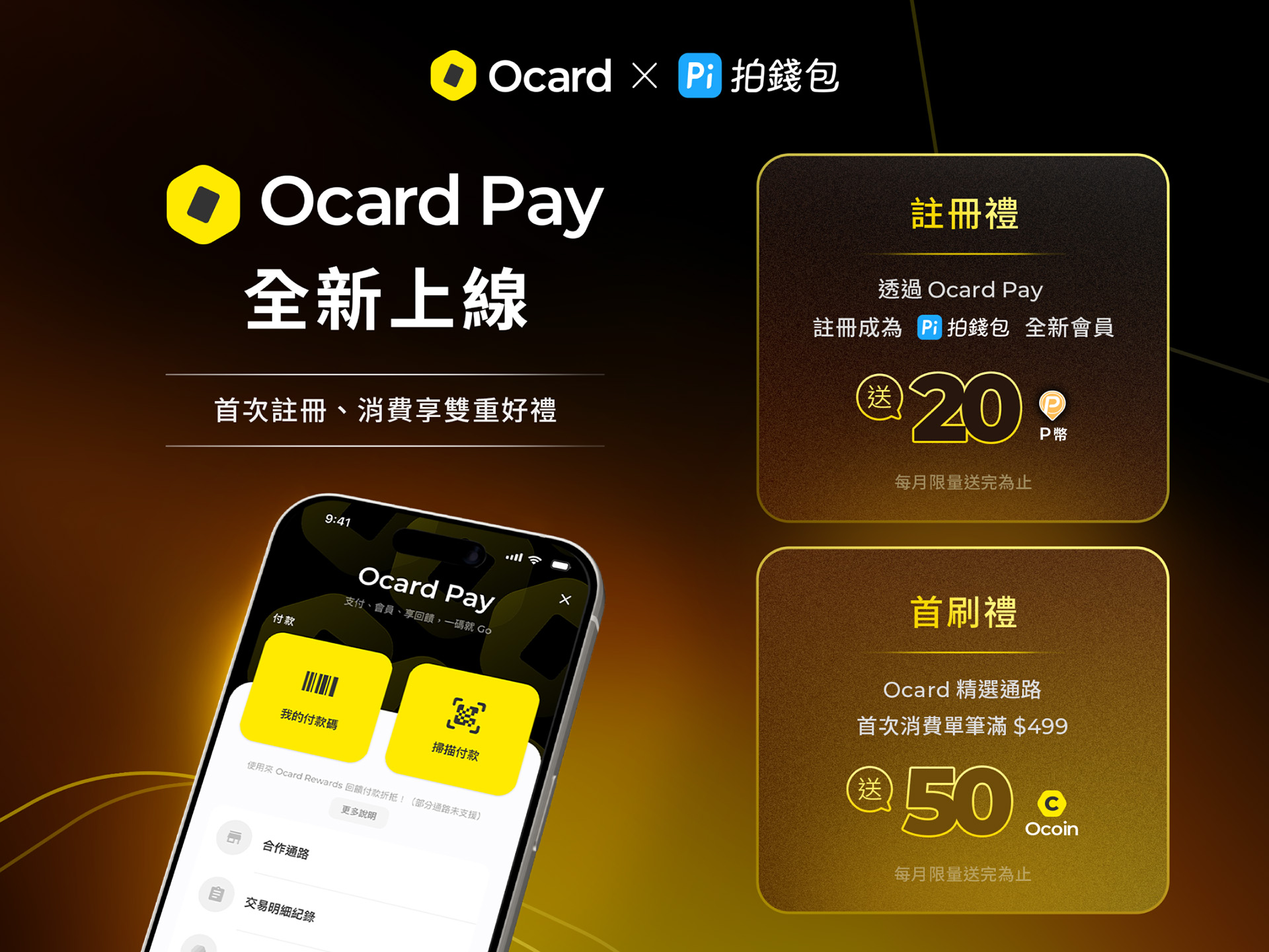 Ocard 與 Pi 拍錢包重磅聯手推 Ocard Pay ! 開創點數經濟新體驗 新申辦玉山 Pi 拍錢包信用卡 綁定 Ocard Pay 多元回饋搶市登場 築間集團等精選通路首刷最高享 1,600 P幣 再享筆筆 14% 回饋
